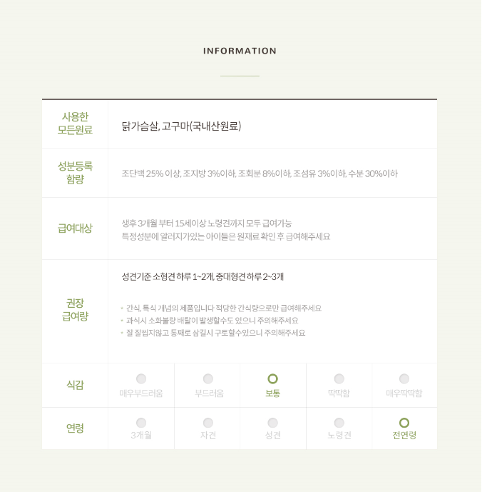 * 간혹 알러지가 있는 예민한 강아지들은 주원료를 확인 후 급여해 주세요 *