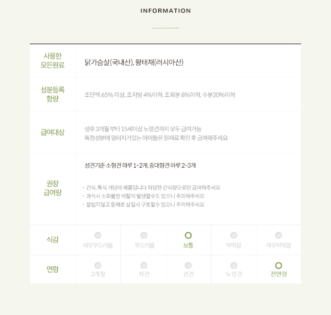 * 간혹 알러지가 있는 예민한 강아지들은 주원료를 확인 후 급여해 주세요 *