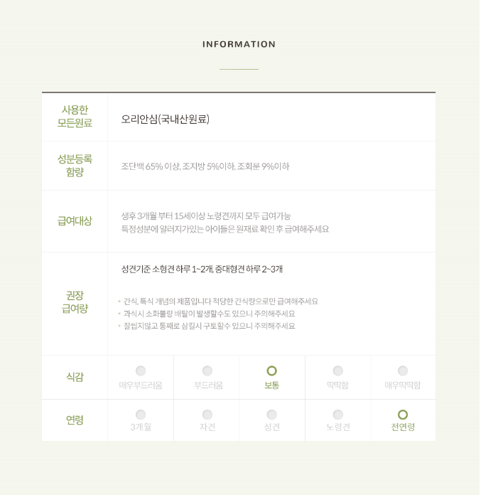 * 간혹 알러지가 있는 예민한 강아지들은 주원료를 확인 후 급여해 주세요 *