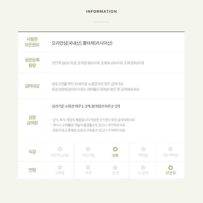 * 간혹 알러지가 있는 예민한 강아지들은 주원료를 확인 후 급여해 주세요 *