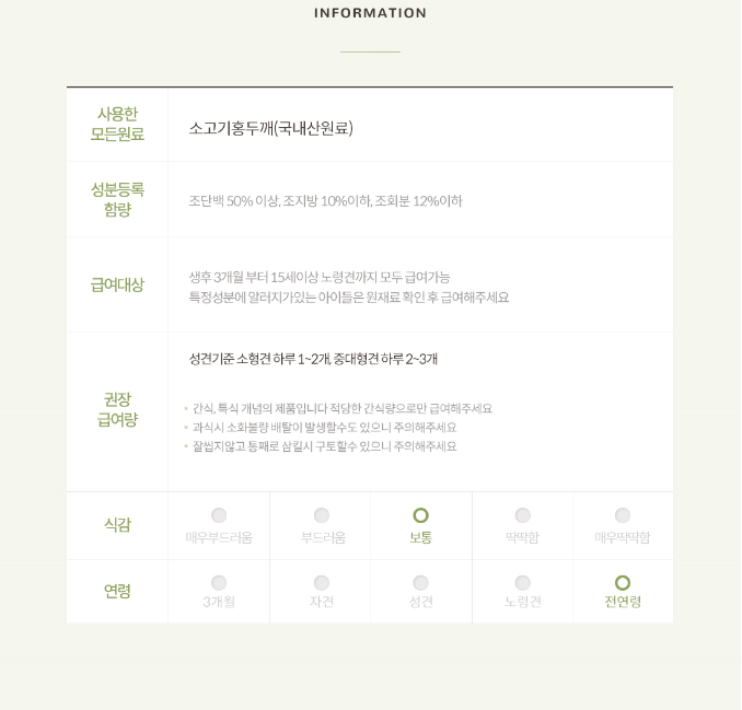 * 간혹 알러지가 있는 예민한 강아지들은 주원료를 확인 후 급여해 주세요 *