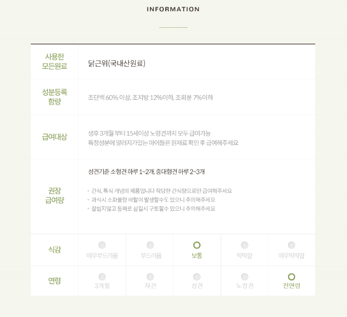 * 간혹 알러지가 있는 예민한 강아지들은 주원료를 확인 후 급여해 주세요 *