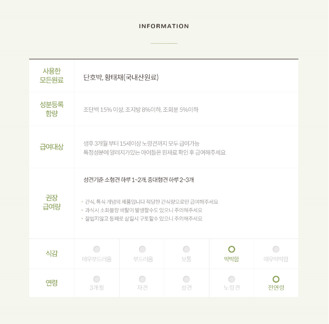 * 간혹 알러지가 있는 예민한 강아지들은 주원료를 확인 후 급여해 주세요 *